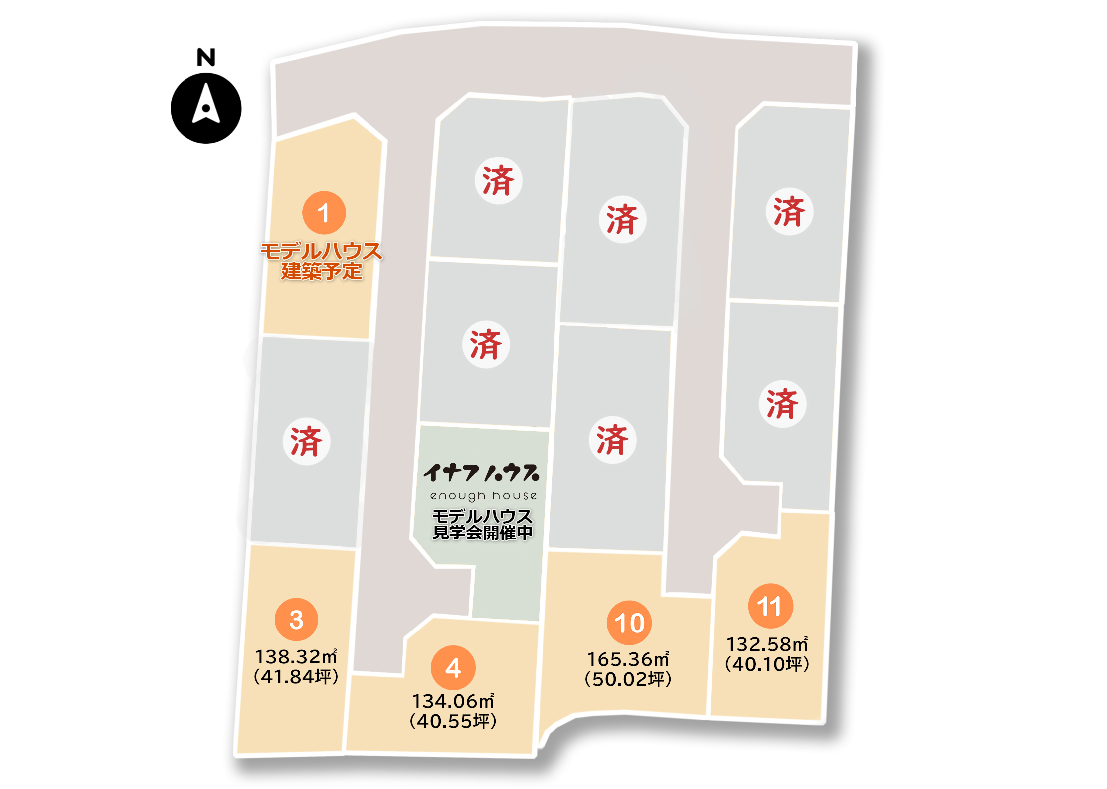 | 区画4 | 販売中 | 134.06㎡ | 40.55坪 | 11,354,000円 |