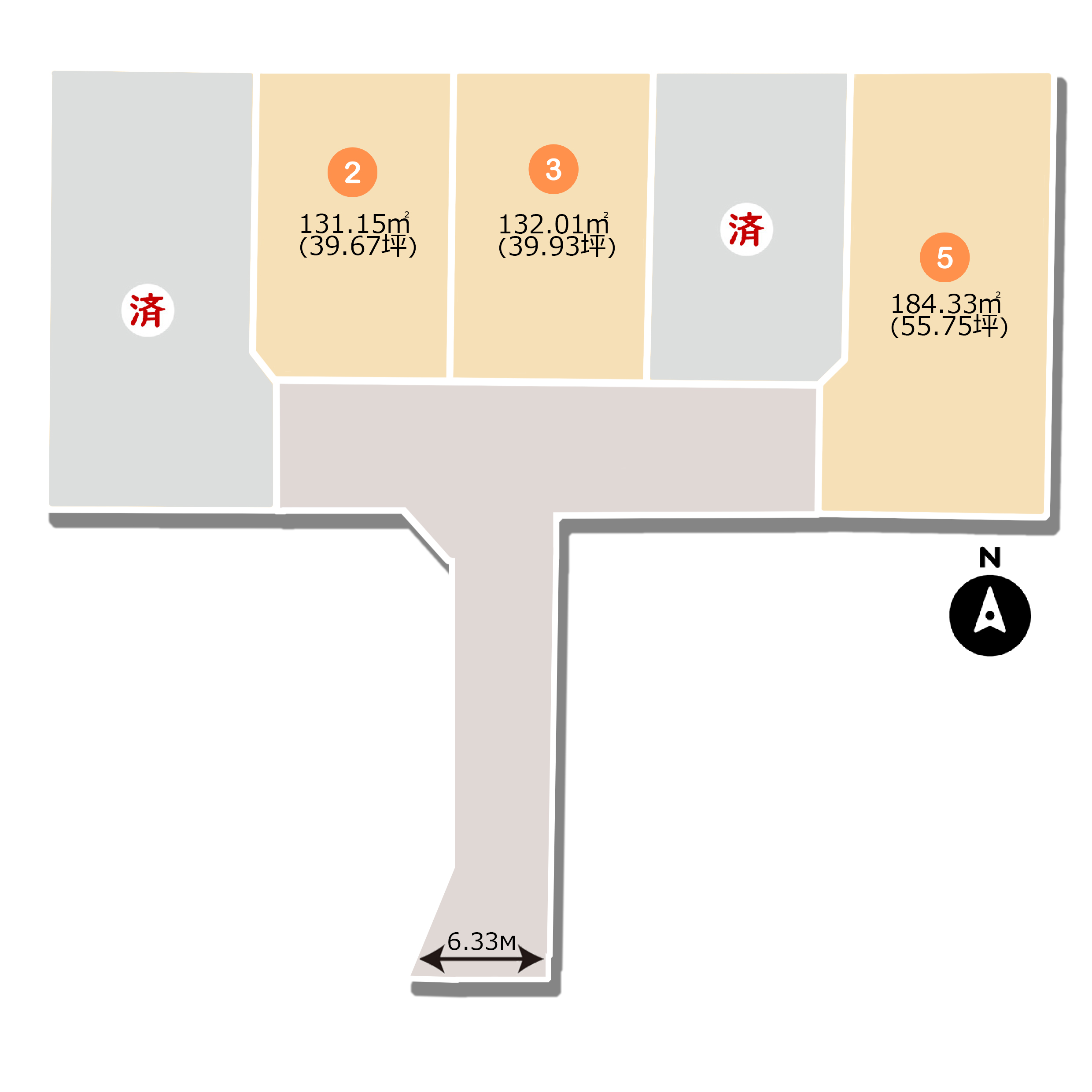 | 区画5 | 販売中 | 184.33㎡ | 55.75坪 | 20,070,000円 |