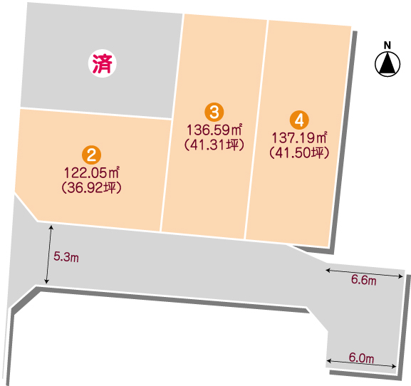| 土地面積 / 坪数 | 122.05㎡ ~137.19㎡ / 36.92坪 ~ 41.50坪 | ||