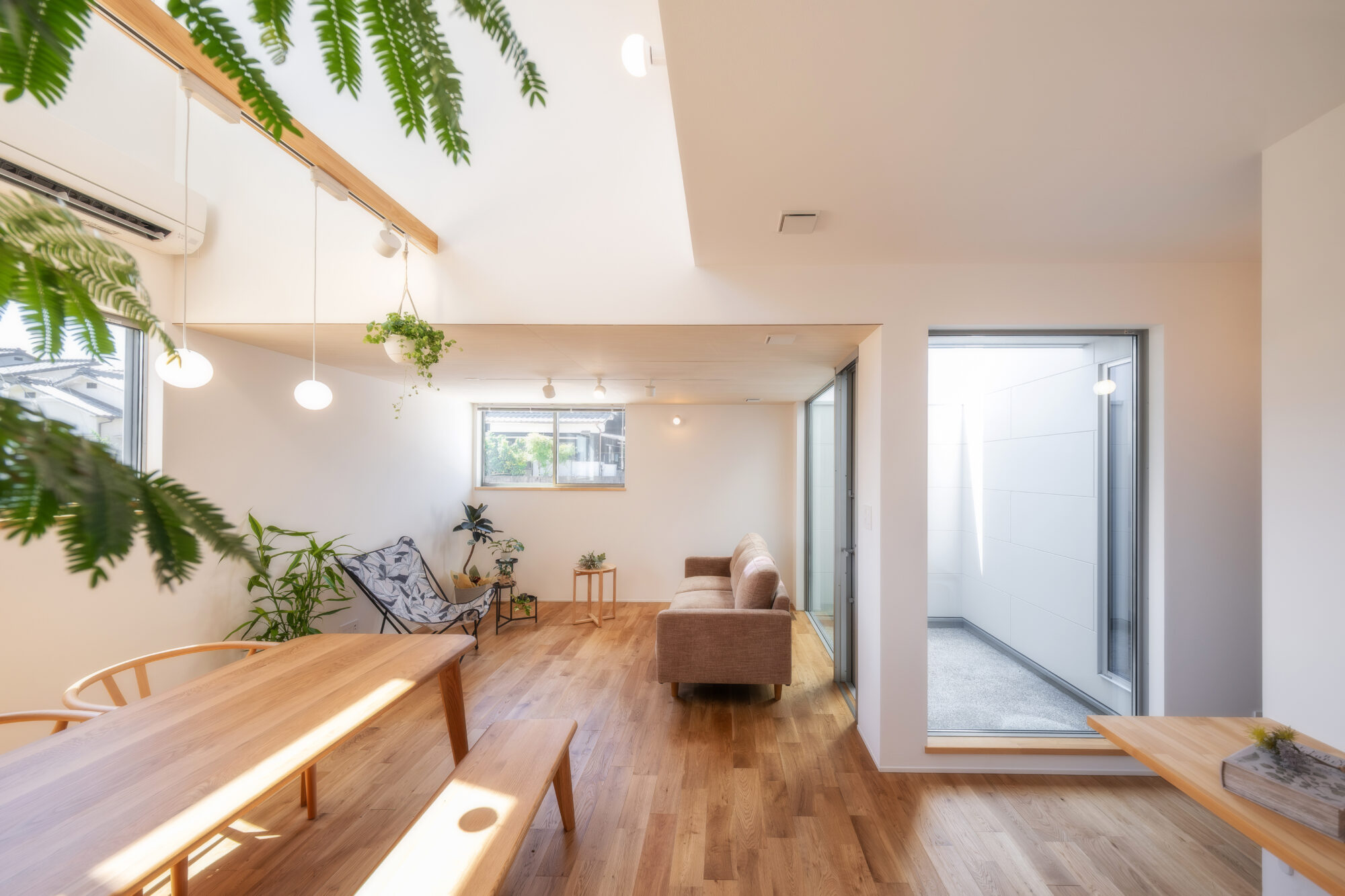 また、玄関とリビングに面して中庭を設けることで、邸内にやわらかな光と開放感を取り込み、視線が抜ける心地よい空間を叶えました。