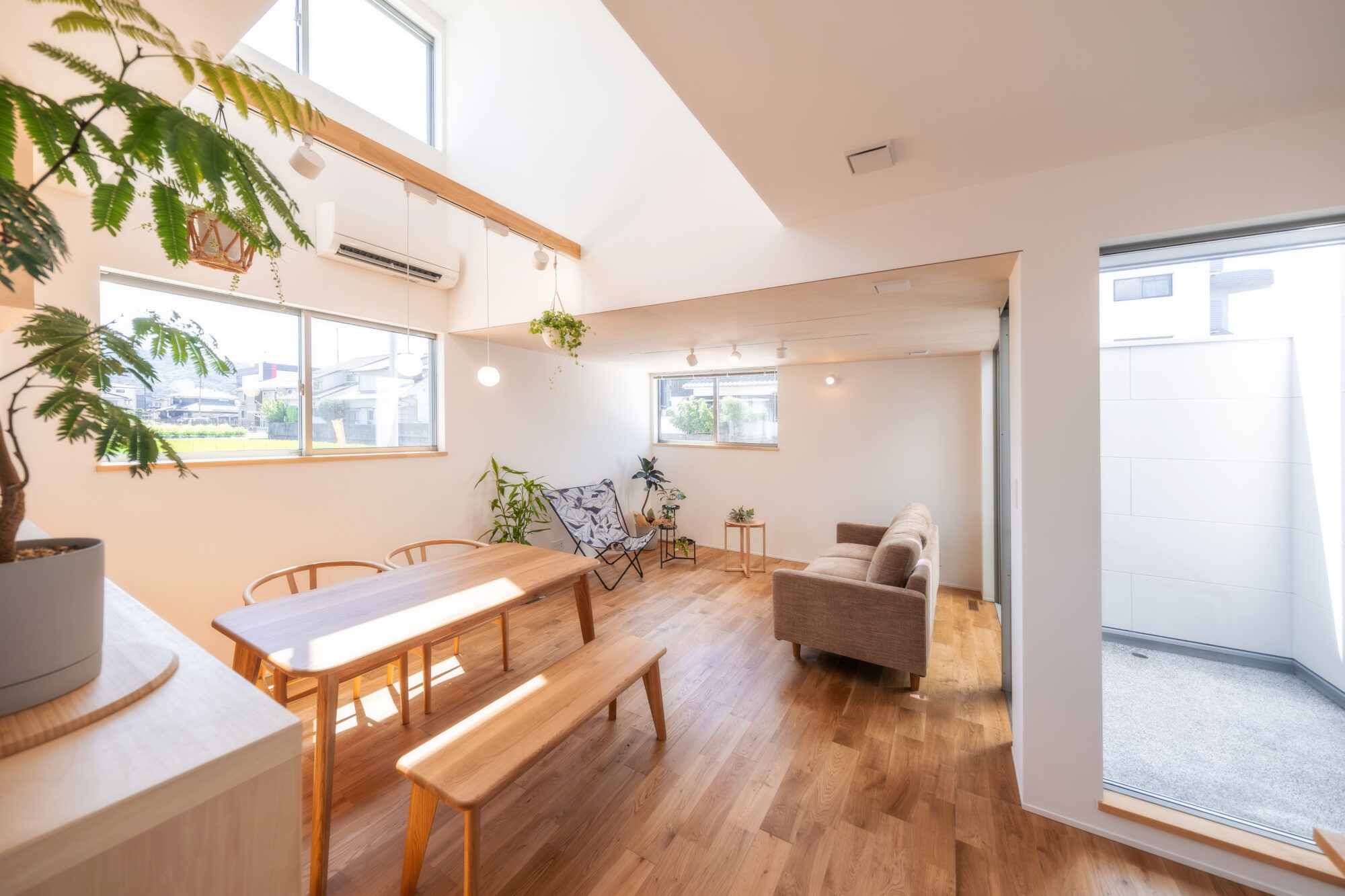 吹き抜けから光が降り注ぐLDK
