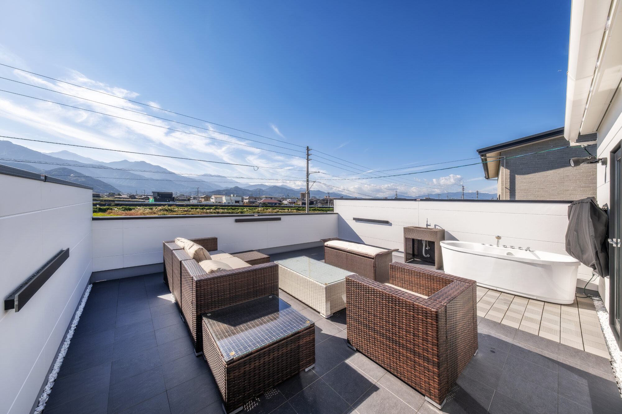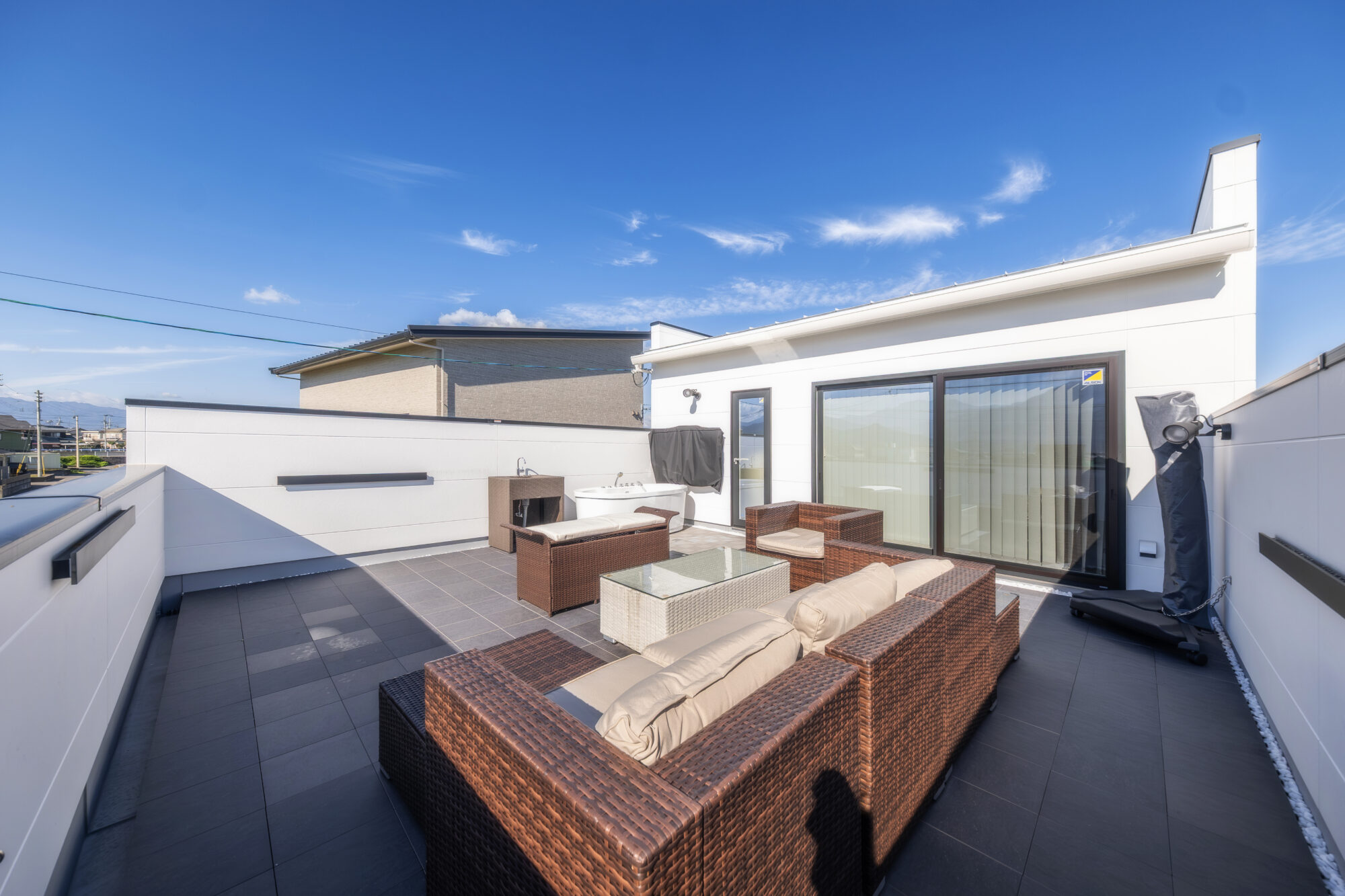 このお家の最大の魅力は、眼下に広がる雄大な景色を望むルーフバルコニーです。