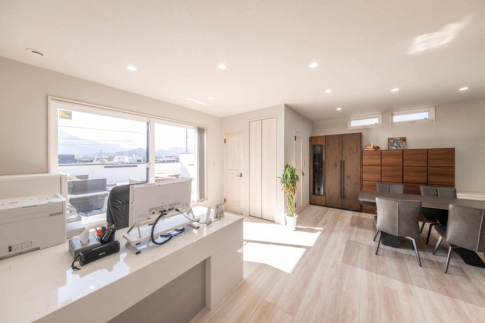 窓際のカウンターデスクは、開放的な景色を楽しみながら作業ができる環境になっております。