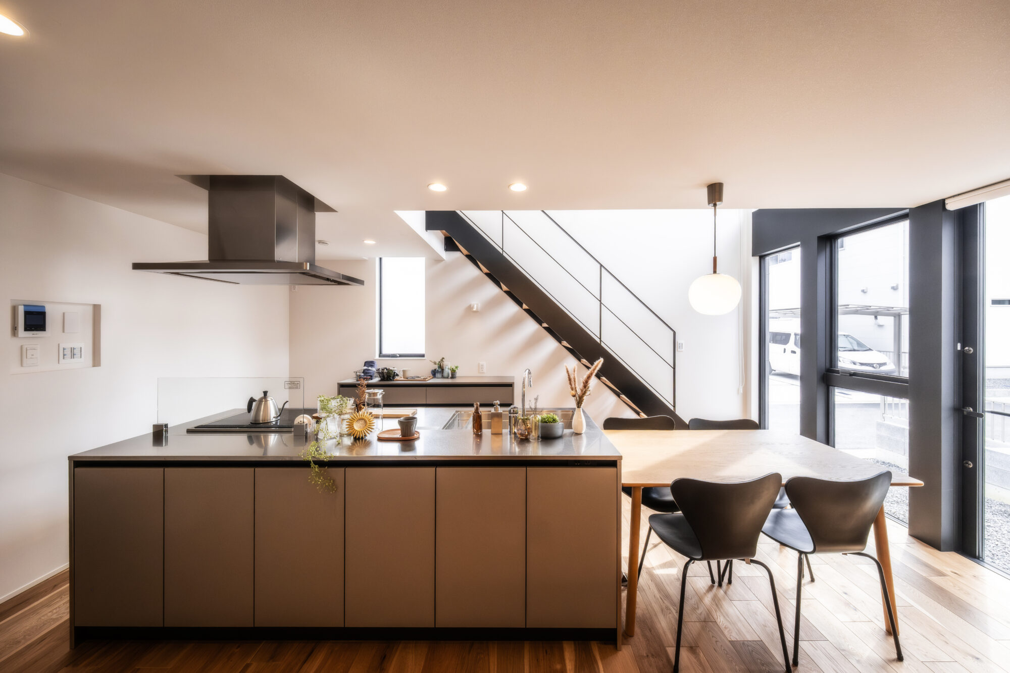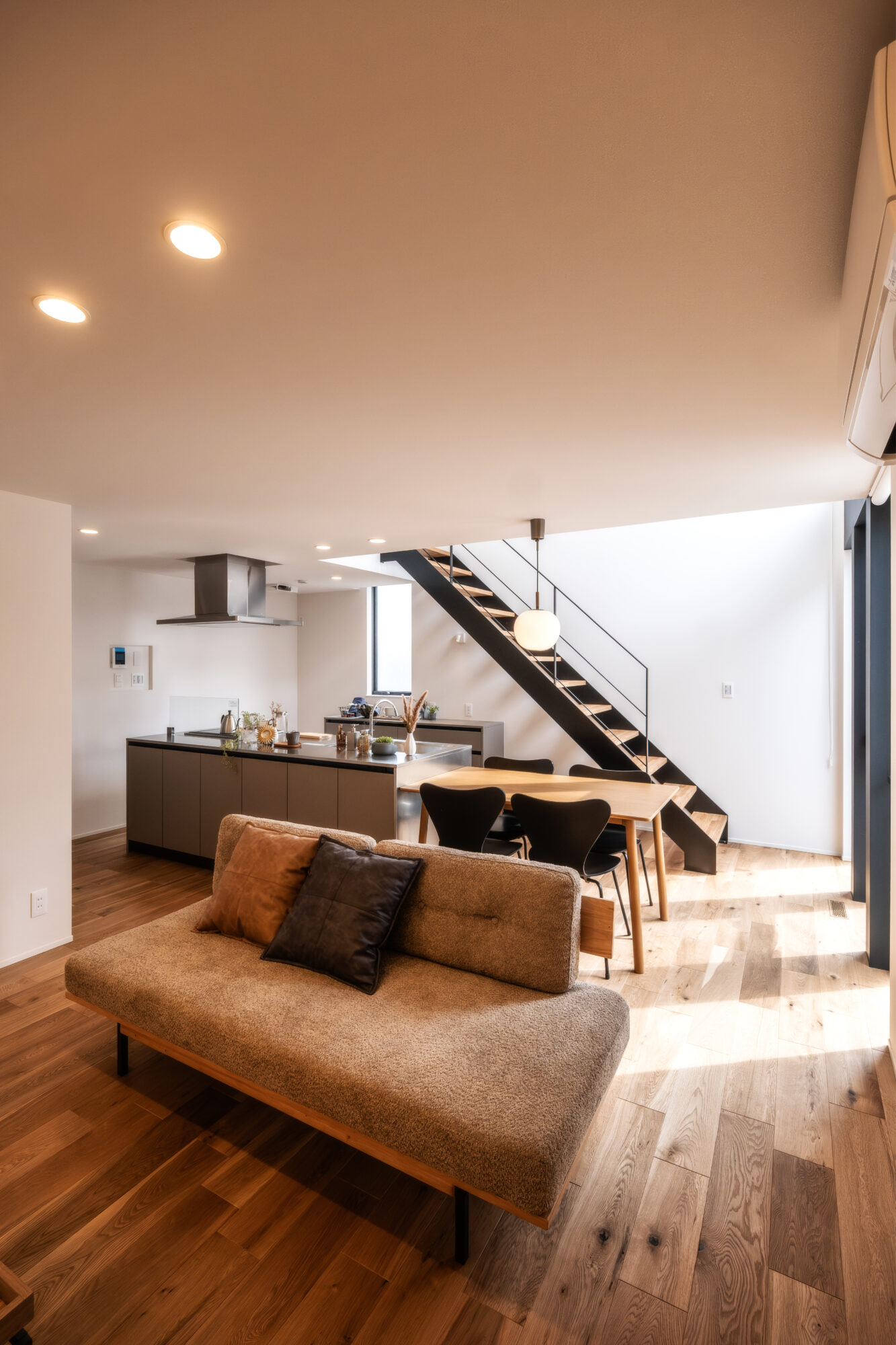 アイランドキッチンとリビングが一体となった、家族が集まる心地よい空間です。