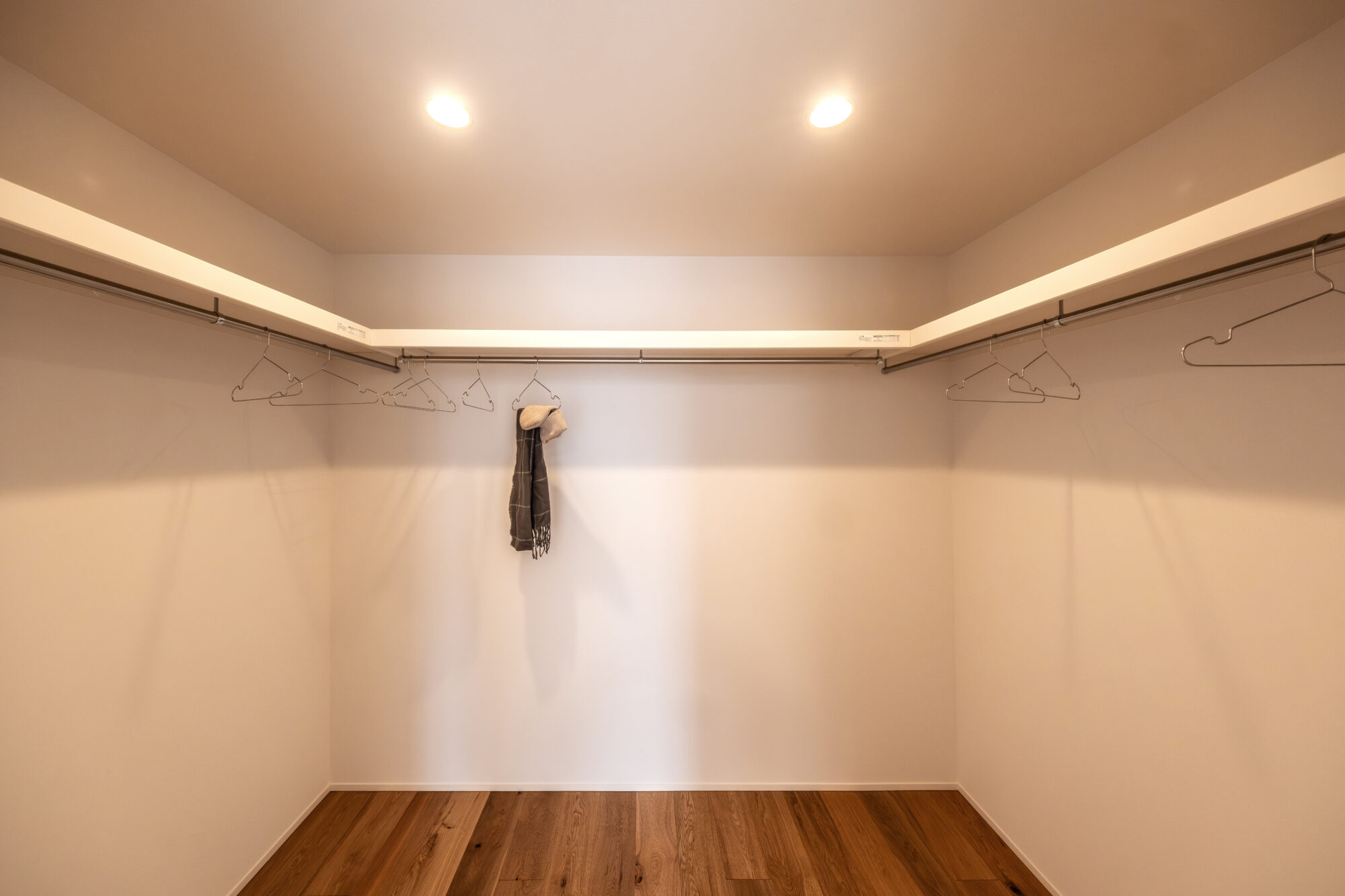 その開放感と対をなすのが、奥に構える広々としたウォークインクローゼットです。