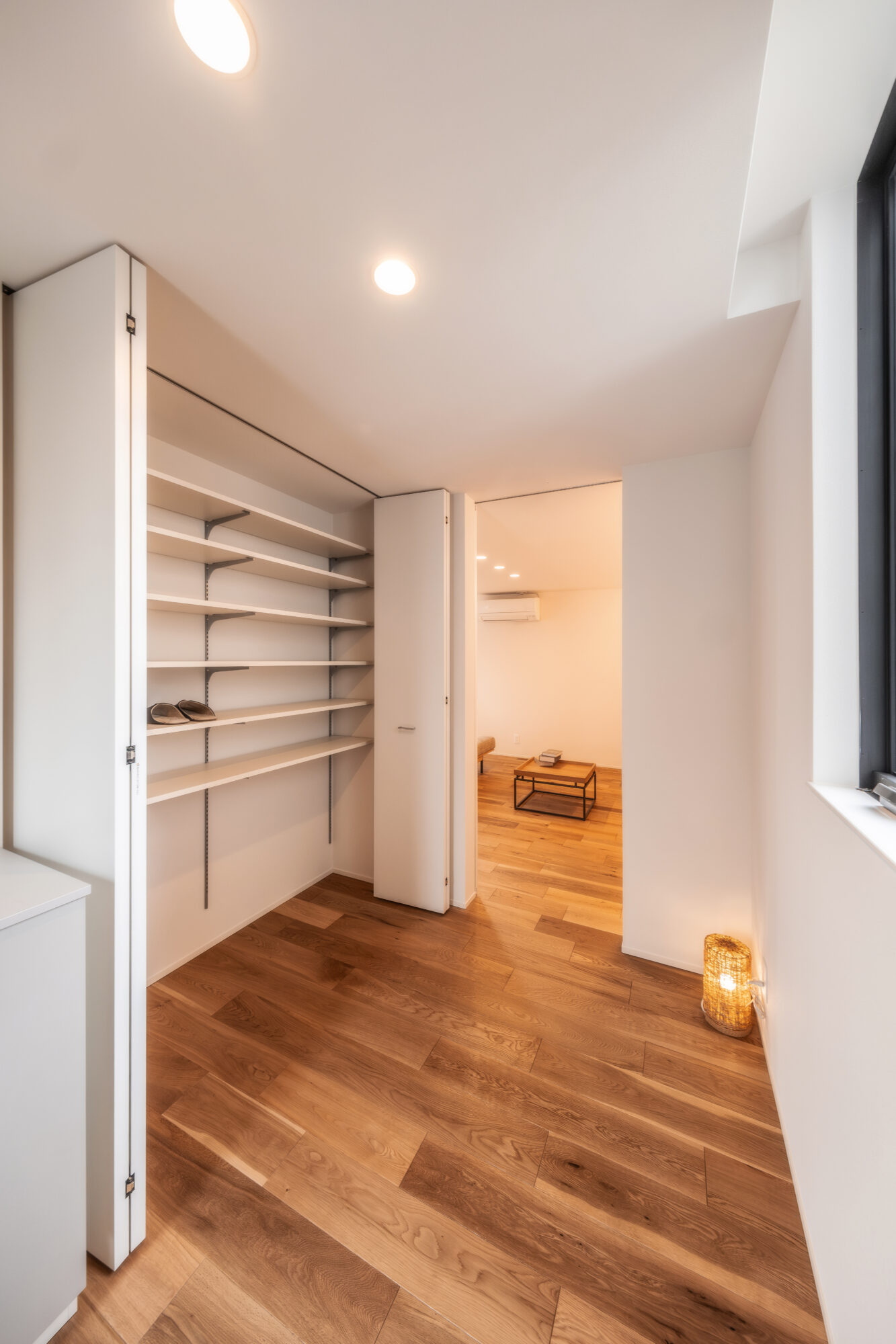 入り口に扉を設けないオープンな設計にすることで、動線をスムーズにし、空間にさらなる奥行きを与えました。